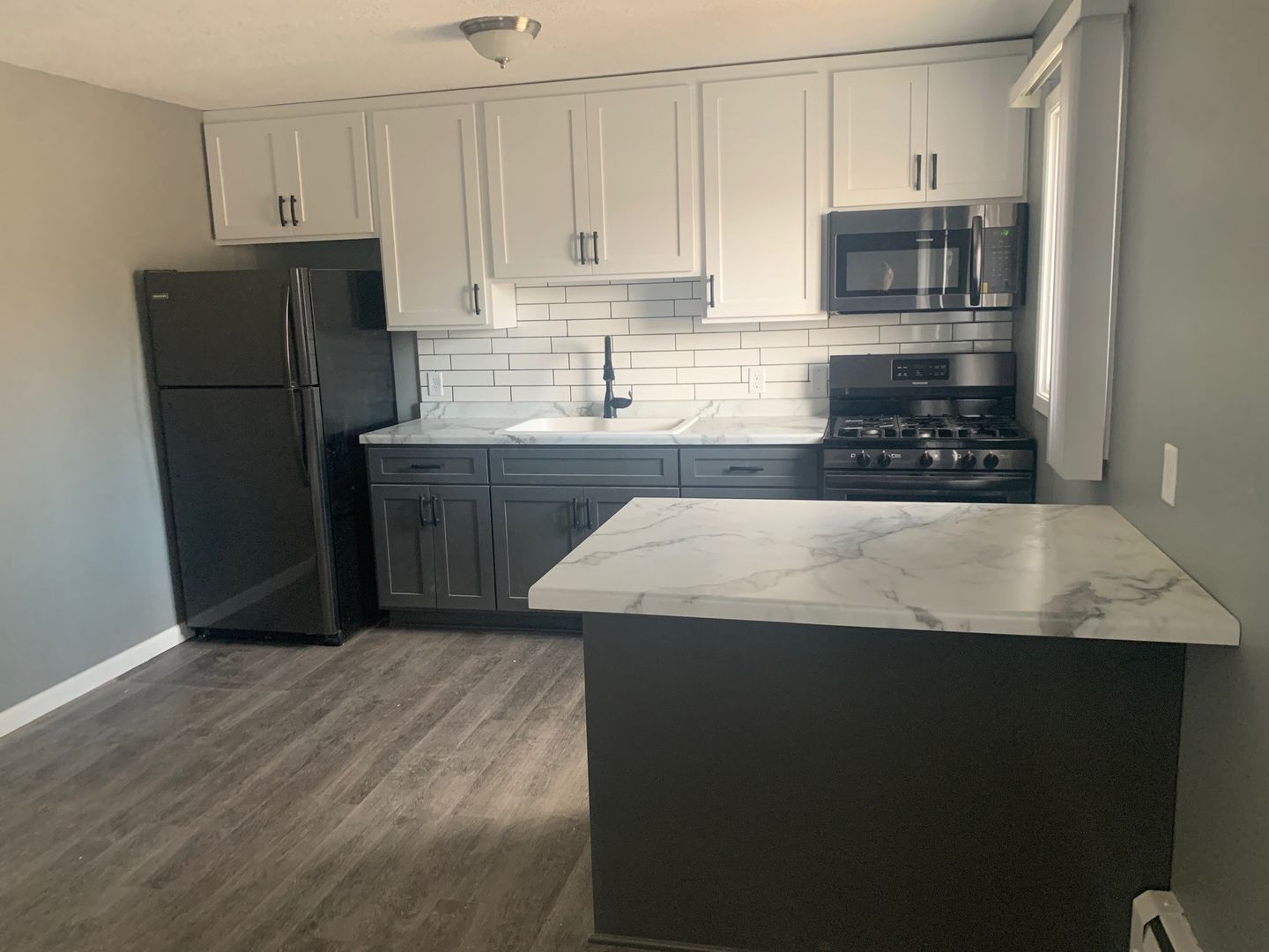 Beautifully remodeled studios! Kitchen has full size appliances, all dark stainless steel. Featuring super modern design with white upper cabinets and grey lower cabinets, enlarged but classic white subway tile, farmhouse sink, Hard flooring throughout with white basebord accent. Multiple closets. In the heart of Osseo, minutes to stores, resturants and more. You really cant beat this location and you dont want to miss out on these!